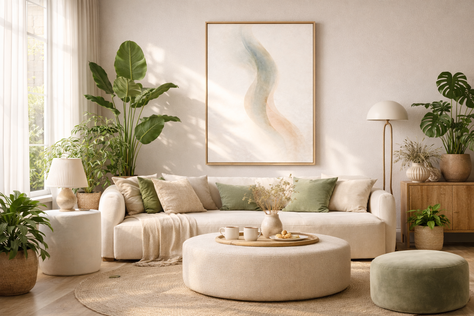 Artwork that incorporates gentle green shades can subtly tie the room together, especially if there are plants or natural materials in the space. It brings a sense of calm and nature indoors without feeling bold or overpowering.
