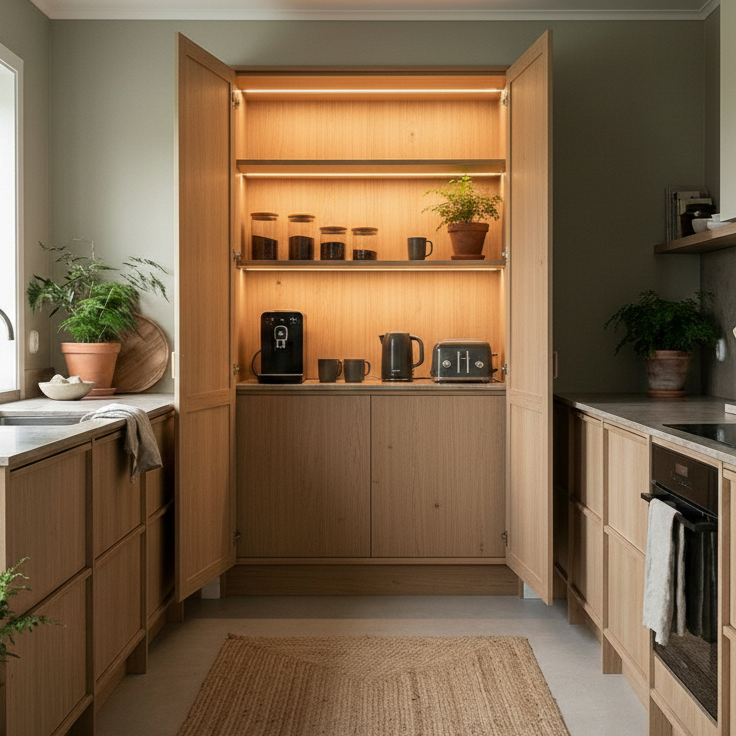Mornings are the most chaotic part of our day. By giving that chaos a home—and a set of doors to hide behind—the kitchen becomes a place where you can actually breathe. It’s about creating a home that helps you feel a little more human before your first cup of coffee.