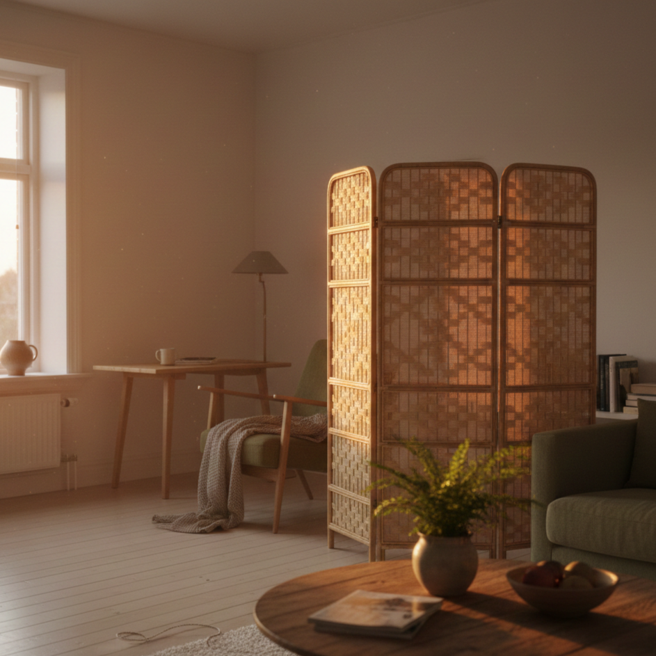 There are also moments when flexibility matters more than permanence. In those cases, a folding room screen can be useful precisely because it isn’t fixed. It appears when needed, disappears when it’s not, and doesn’t ask the space to commit to one layout all the time. The once made of bamboo especially also looks great!