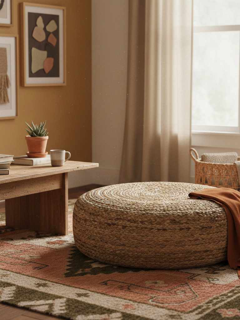 Awoven pouf orlow seat often becomes this kind of object — something that’s used, moved, leaned on, and never quite “styled,” but always right.