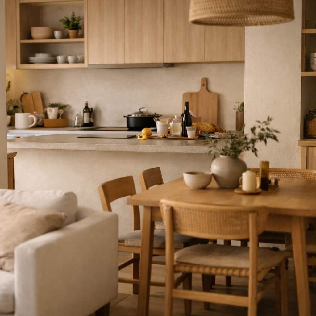 In open-plan homes, everything is visible from almost everywhere. A chair pushed slightly out of place. A counter used for three different things in one day. A corner that holds something “for now.”